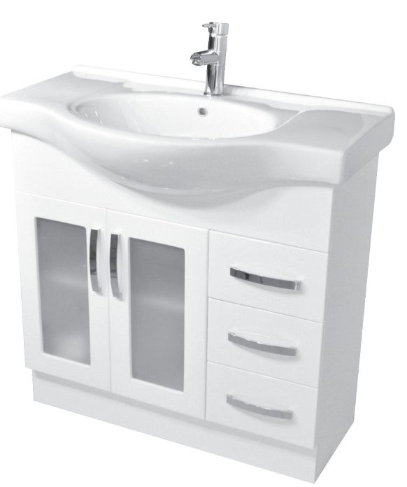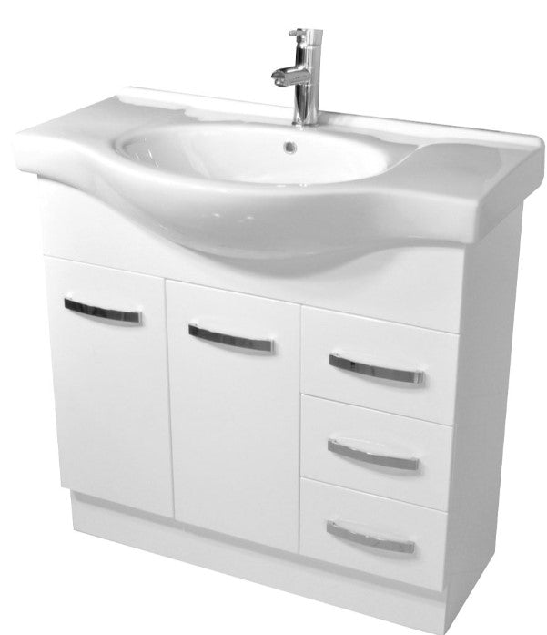 Antonio space saver vanities feature a round spoon-style basin-top that maximises bowl space while maintaining mobility around your vanity.