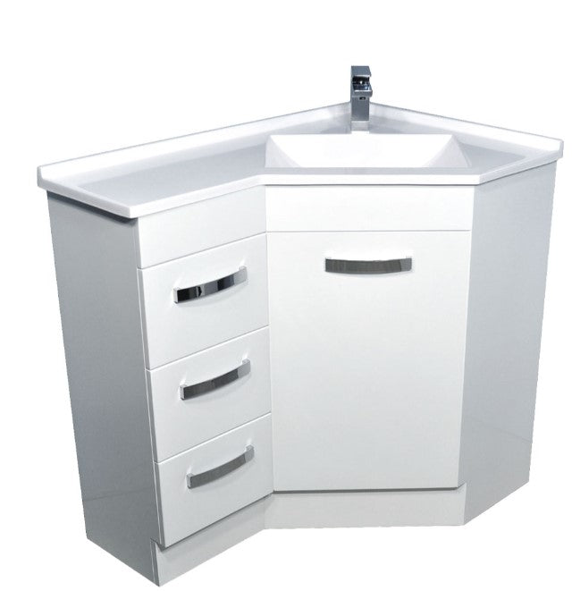 Corner vanities provide a simple solution to tight spaces, offering a convenient way to fill a gap or maximise space in your bathroom or washroom.