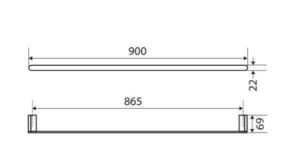 Length: 900mm x Rail width: 22mm x Projection: 69mm
