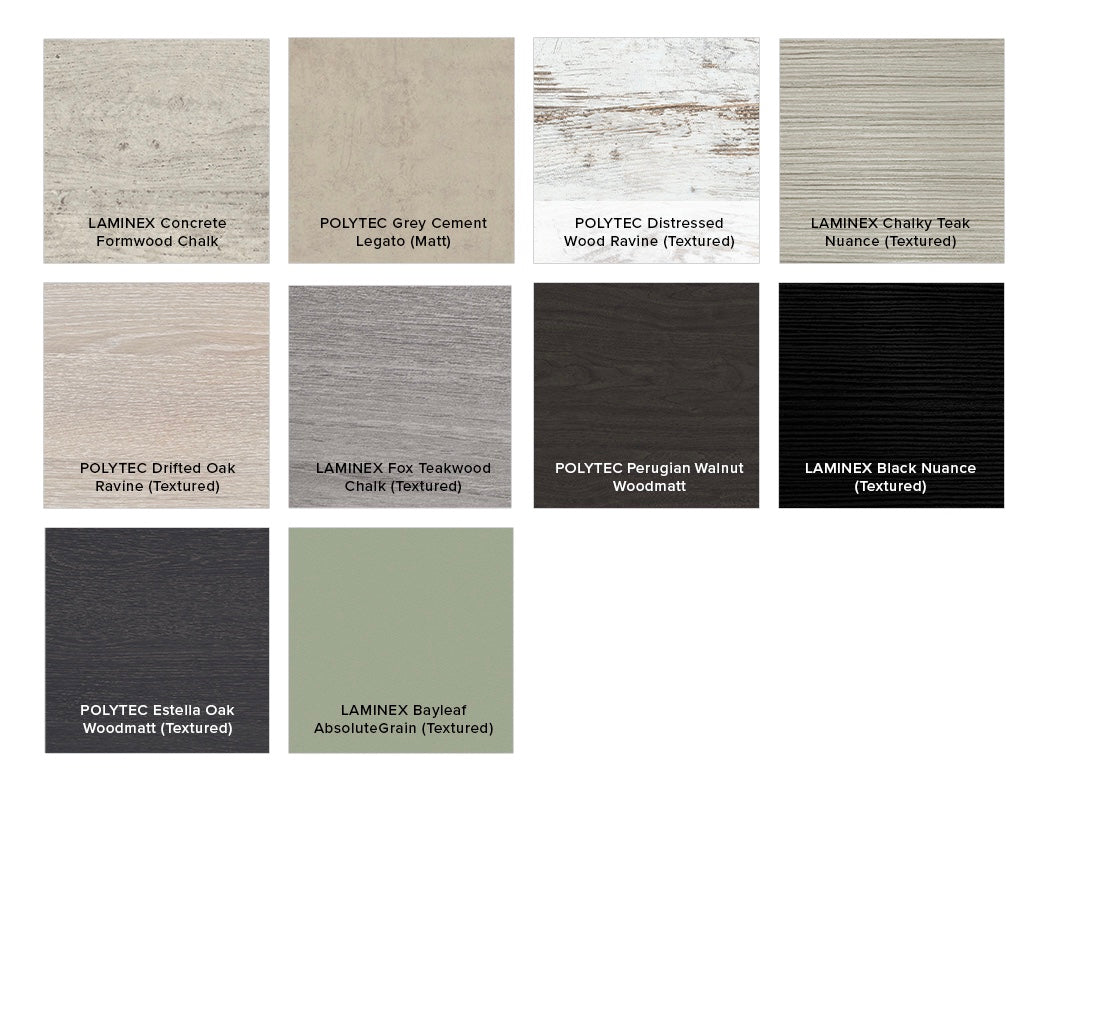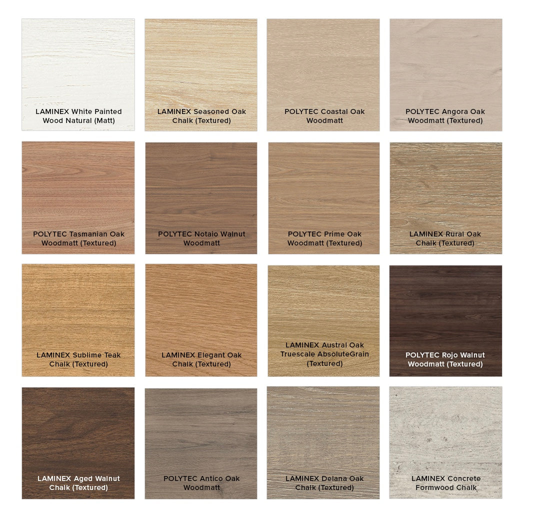 - Select from over 20 woodgrain finishes