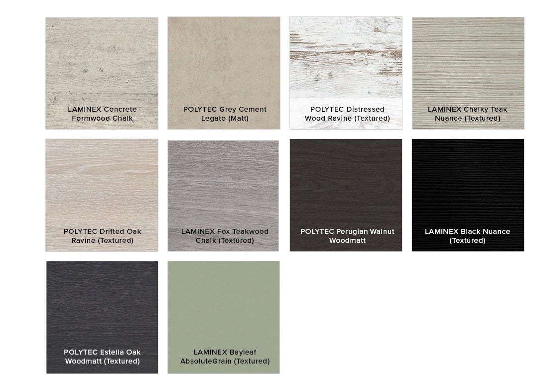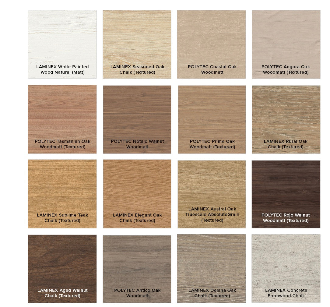 - Select from over 20 woodgrain finishes